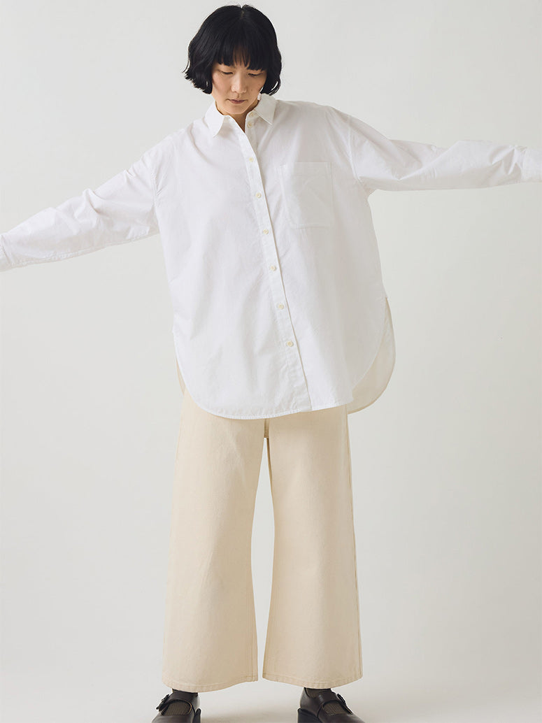 Core pieces to be worn for years to come. Oversized cotton Oxford shirts, slubby jersey pieces and denim trousers made from regenerative cotton grown in Türkiye.