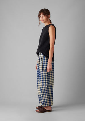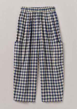Our pull-on trousers feature a yarn-dyed gingham pattern. Made from a supple blend of linen and organic cotton, with an elasticated waist for all-day comfort. They fall to a cropped length with patch pockets.
