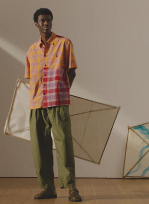 Contrast check panelling brings a sense of play and experimentation to our cotton shirt. The larger check weave is repeated on the lower front panel and the yoke, falling to a relaxed fit with short sleeves and a patch pocket. Part of our Menswear collection.