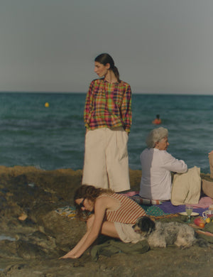 Our denim shorts are made from a regenerative cotton denim, falling to the calf and feature pleats at the front for volume. Fastened with a corozo button, with side patch pockets and one pocket at the front.