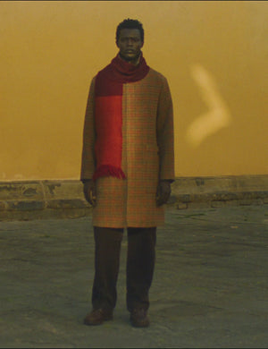 Italian-woven wool houndstooth. Straight shape. Large collar. Back vent. Patch Pockets. Horn buttons. Fully lined.