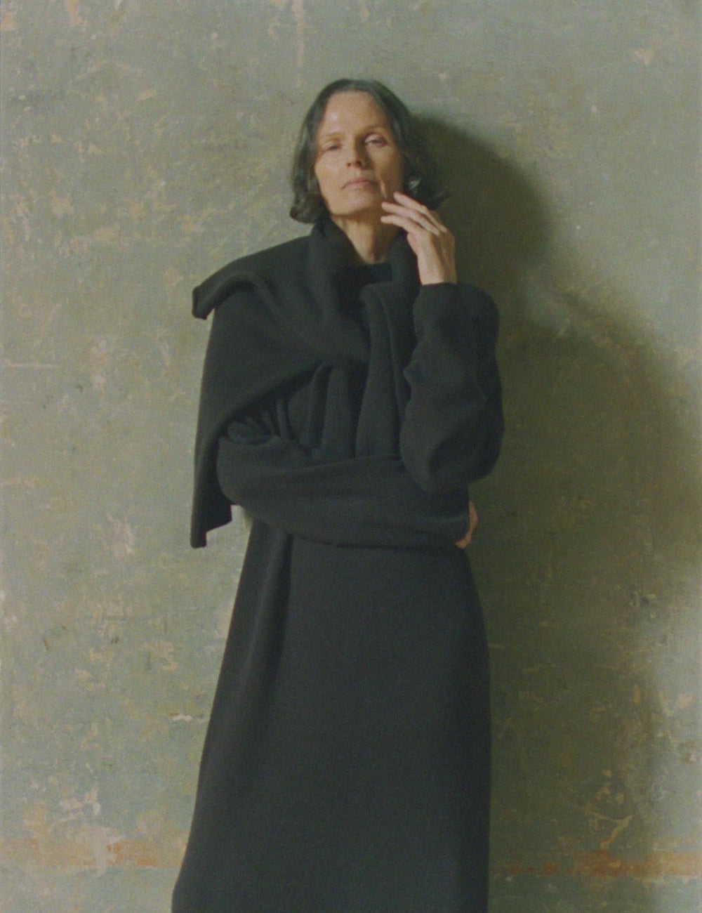 Wool and recycled cashmere blend. Integral neck. Dropped shoulders. Ribbed cuffs and hem.